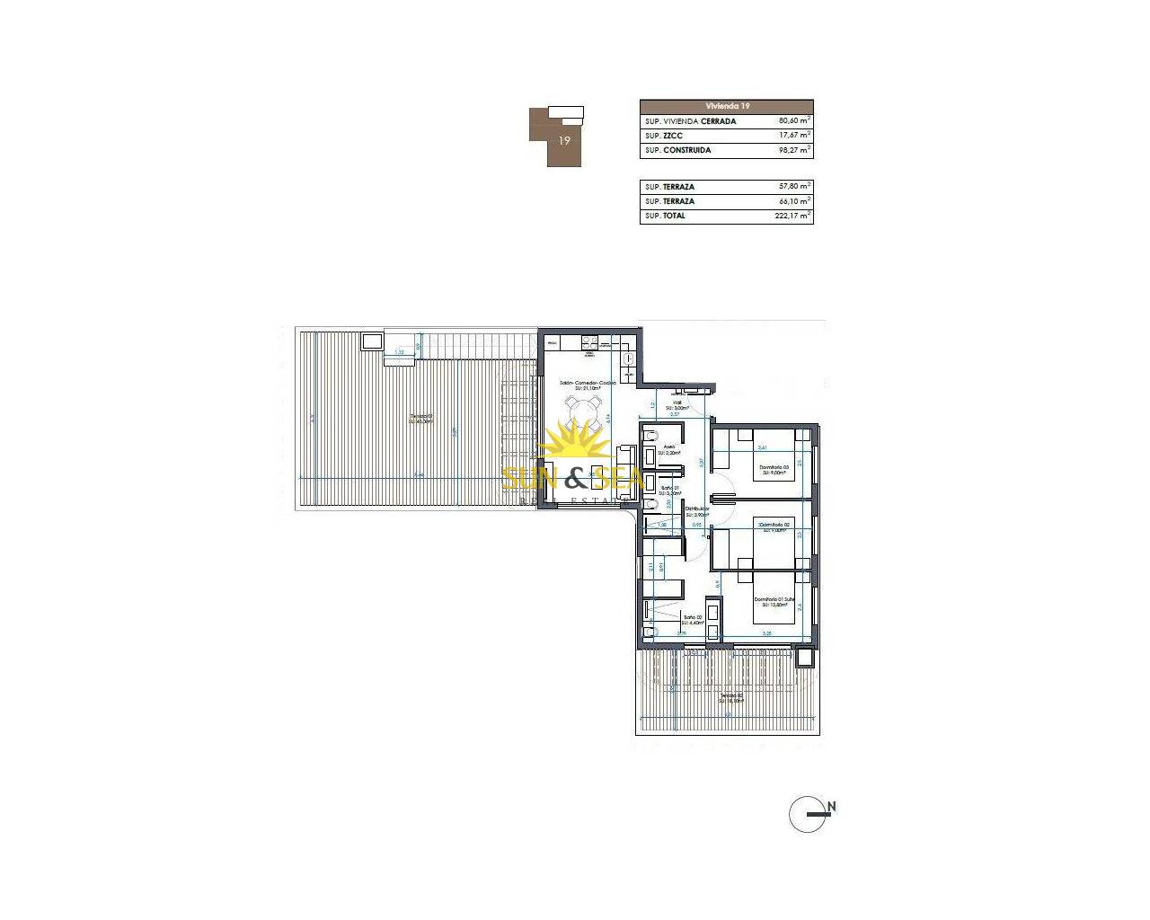 Новые апартаменты в Гуардамар-дель-Сегура – современная жизнь всего в 1,4 км от пляжа Откройте для себя новый жилой комплекс в Гуардамар-дель-Сегура, Аликанте, предлагающий всего 19 эксклюзивных современных домов, спроектированных для комфортной и современной жизни на побережье Коста-Бланка. Идеально расположенный всего в 1,4 км от пляжа и в нескольких минутах ходьбы от центра города, этот комплекс сочетает в себе стиль, практичность и отличное расположение на побережье. Эксклюзивный жилой проект с ограниченным количеством квартир Этот бутиковый комплекс предлагает 2- и 3-комнатные квартиры с различными планировками, которые удовлетворят самые разные потребности: Квартиры на первом этаже с просторными частными террасами Квартиры на средних этажах с просторными балконами или открытыми террасами. Впечатляющий пентхаус с частным солярием и бассейном Каждая квартира отличается элегантными изогнутыми архитектурными линиями, стеклянными перилами и современной отделкой — идеально подходит как для круглогодичного проживания, так и для роскошного отдыха. Высококачественная отделка и энергоэффективные характеристики Каждая квартира, спроектированная с учетом комфорта и экологичности, включает: Усиленная входная дверь для дополнительной безопасности Полностью меблированная кухня с бытовой техникой Энергоэффективная аэротермальная система для горячего водоснабжения Частное парковочное место включено в стоимость В здании также есть общий бассейн и ландшафтные сады, идеально подходящие для наслаждения солнечным средиземноморским климатом. Выгодное расположение в Гуардамар-дель-Сегура Этот комплекс расположен в хорошо связанном и оживленном районе Гуардамара, откуда легко добраться до природы, пляжей и основных услуг. Жители могут воспользоваться близостью супермаркетов, ресторанов, медицинских центров, парков, а также знаменитого соснового леса и дюн города. Основные расстояния: Центр города Гуардамар – 1 км Ближайший пляж – 1,4 км Пристань для яхт – 2 км Парк Рейна София – 1,5 км Гольф-клуб La Marquesa (Сьюдад Кесада) – 9 км Торговый центр Habaneras (Торревьеха) – 13 км Аэропорт Аликанте-Эльче – 33 км Общественный транспорт включает прямые автобусные маршруты до Аликанте и Торревьехи, что обеспечивает легкий доступ без необходимости использования автомобиля. Забронируйте свою квартиру на побережье Коста-Бланка Если вы ищете постоянное место жительства, недвижимость для отдыха или выгодное вложение средств, этот новый комплекс в Гуардамар-дель-Сегура — идеальный выбор. Свяжитесь с нами сегодня, чтобы узнать больше или забронировать свой новый дом у моря.