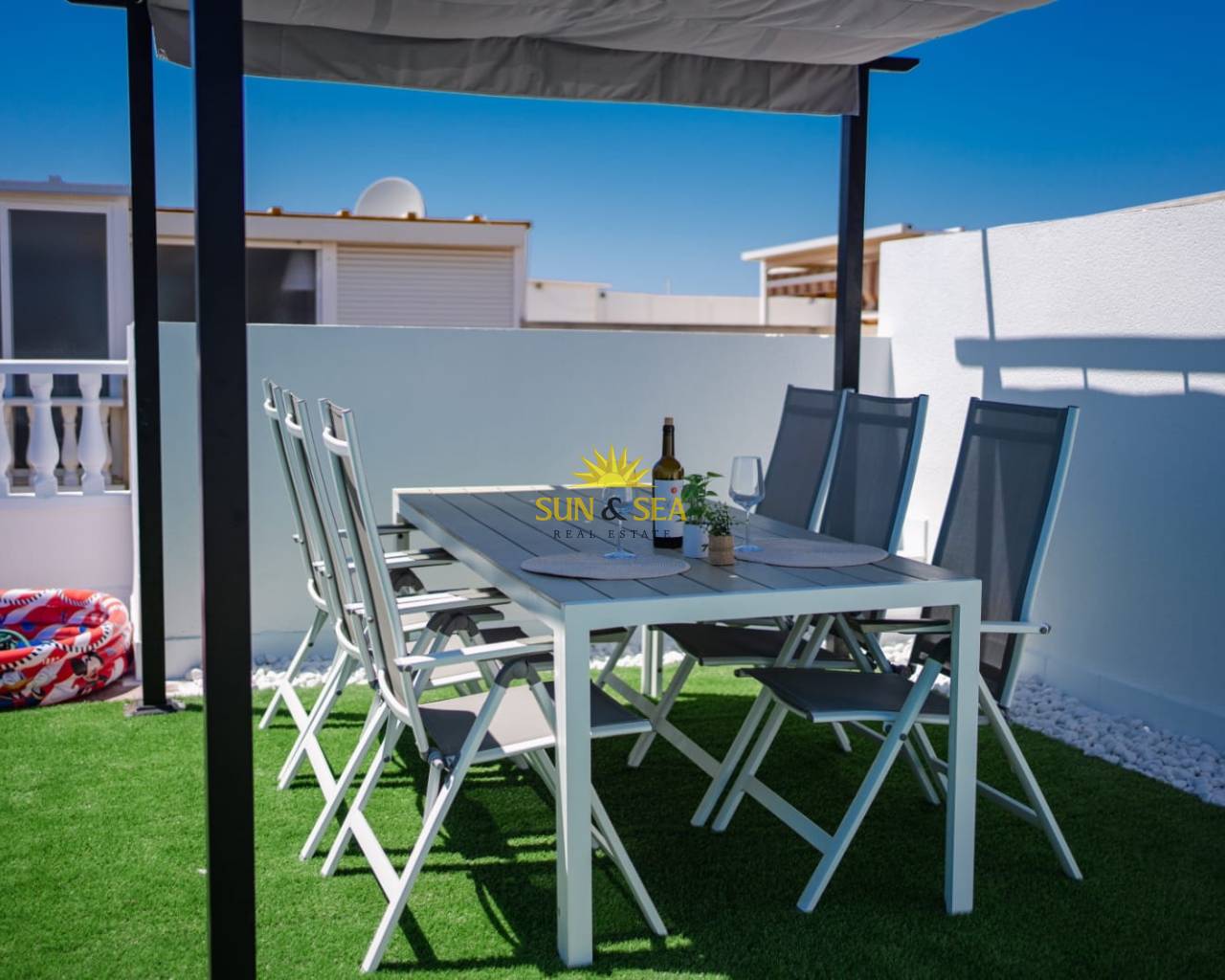 Сдается просторная квартира на 1 этаже, расположенная в районе Aguas Nuevas, Торревьеха, всего в 2,1 км от пляжа Кабо Серверa. Недвижимость выделяется своей общей площадью 107 м², включая большую террасу с зоной отдыха, столами и стульями — идеально подходит для наслаждения средиземноморским климатом круглый год.