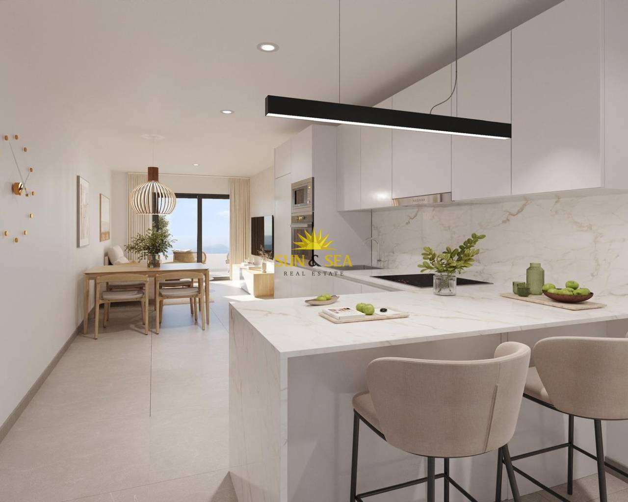 Новые апартаменты в Торревьехе Всего в 600 м от пляжа Плайя-дель-Кура Привилегированное расположение в самом центре Торревьехи Откройте для себя эти новые апартаменты и пентхаусы в одном из самых востребованных районов Торревьехи, всего в 600 м от пляжа Плайя-дель-Кура и в 300 м от набережной. Расположенный в центре города, этот оживленный район предлагает все необходимые удобства в шаговой доступности, включая супермаркеты, магазины, рестораны, кафе и общественный транспорт. Торревьеха - известный прибрежный город на побережье Коста-Бланка, славящийся своим мягким средиземноморским климатом, оживленной атмосферой и круглогодичным образом жизни у моря. Современные апартаменты с просторной планировкой Этот эксклюзивный новый комплекс состоит всего из 12 апартаментов и пентхаусов с 1 или 3 спальнями, спроектированных с учетом удобства, функциональности и современного стиля. Апартаменты на средних этажах имеют просторные террасы, а пентхаусы — дополнительный частный солярий, идеально подходящий для принятия солнечных ванн или обедов на свежем воздухе. Все квартиры имеют открытую кухню, соединенную с гостиной-столовой, что создает светлые и уютные интерьеры. Спальни оснащены встроенными шкафами, а ванные комнаты полностью оборудованы мебелью, зеркалами и душевыми перегородками. За дополнительную плату можно приобрести парковочные места. Качественная отделка и энергоэффективные характеристики Квартиры построены из высококачественных материалов с упором на энергоэффективность. Наружная алюминиевая столярка включает технологию терморазрыва и двойное остекление для тепло- и звукоизоляции. Моторизованные жалюзи добавляют комфорта и безопасности. Каждая квартира имеет предварительную установку кондиционера и канального отопления, усиленные входные двери и лакированные белые межкомнатные двери. Горячая вода производится с помощью аэротермической системы, что снижает потребление энергии и повышает экологичность. Солярий на крыше с общим бассейном Жители могут пользоваться эксклюзивным солярием на крыше с общим бассейном, куда можно подняться на лифте или по лестнице. Эта частная зона идеально подходит для отдыха, принятия солнечных ванн и наслаждения панорамным видом на город. Она предлагает тихое убежище от оживленных улиц Торревьехи и значительно повышает ценность комплекса. Образ жизни и окрестности Торревьехи Торревьеха известна своим обширным побережьем, песчаными пляжами и знаменитыми соляными карьерами. Природный парк Лагунас-де-ла-Мата-и-Торревьеха находится примерно в 5 км и предлагает пешеходные маршруты и уникальные пейзажи. Несколько полей для гольфа, таких как Villamartin Golf и Las Colinas Golf, находятся в 12-18 км. Яхт-клуб и порт Торревьехи находятся примерно в 1 км. Аэропорт Аликанте находится примерно в 45 км, а международный аэропорт Мурсии - примерно в 65 км, оба с отличным сообщением с Европой. Ваш дом на побережье ждет вас Не упустите эту возможность приобрести современную новостройку рядом с пляжем в Торревьехе. Свяжитесь с нами сегодня, чтобы получить дополнительную информацию или договориться о частном просмотре.